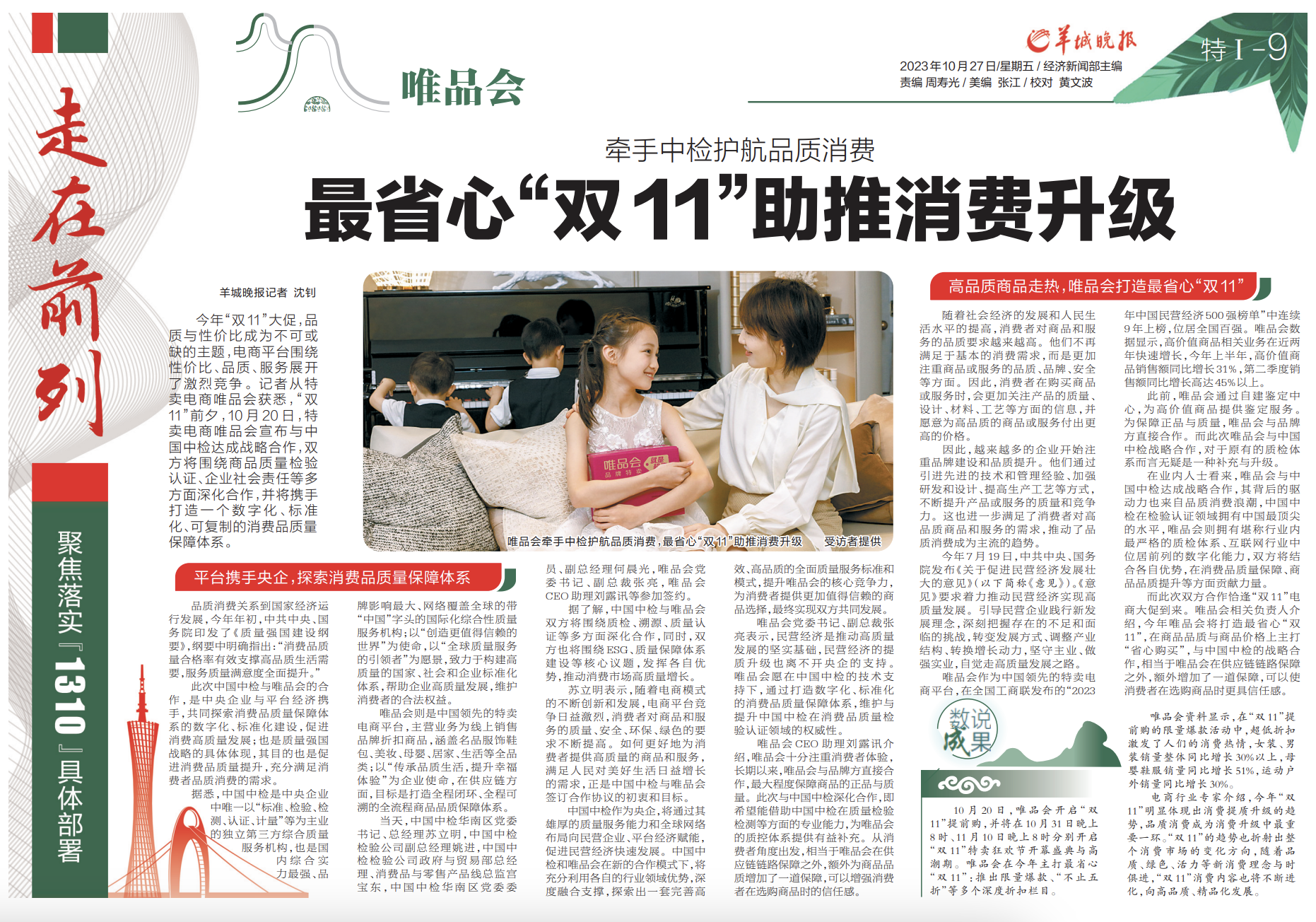 今年“双11”大促,品质与性价比成为不可或缺的主题,电商平台围绕性价比、品质、服务展开了激烈竞争。记者从特卖电商唯品会获悉,“双11”前夕,10月20日,特卖电商唯品会宣布与中国中检达成战略合作,双方将围绕商品质量检验认证、企业社会责任等多方面深化合作,并将携手打造一个数字化、标准化、可复制的消费品质量保障体系。