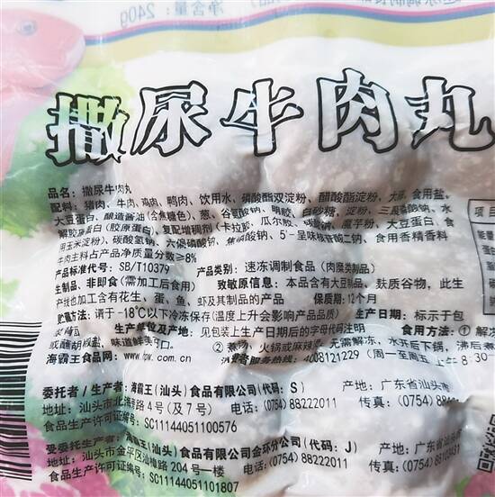 关于食品名称问题,《通则》指出,应在食品标签的醒目位置,清晰地标示反映食品真实属性的专用名称。“如果不仔细看真的不知道里面还有这些门道,既然猪肉成分排在第一位,应该叫撒尿猪肉丸。”一位正在购买火锅食材的消费者对海霸王撒尿牛肉丸提出质疑。