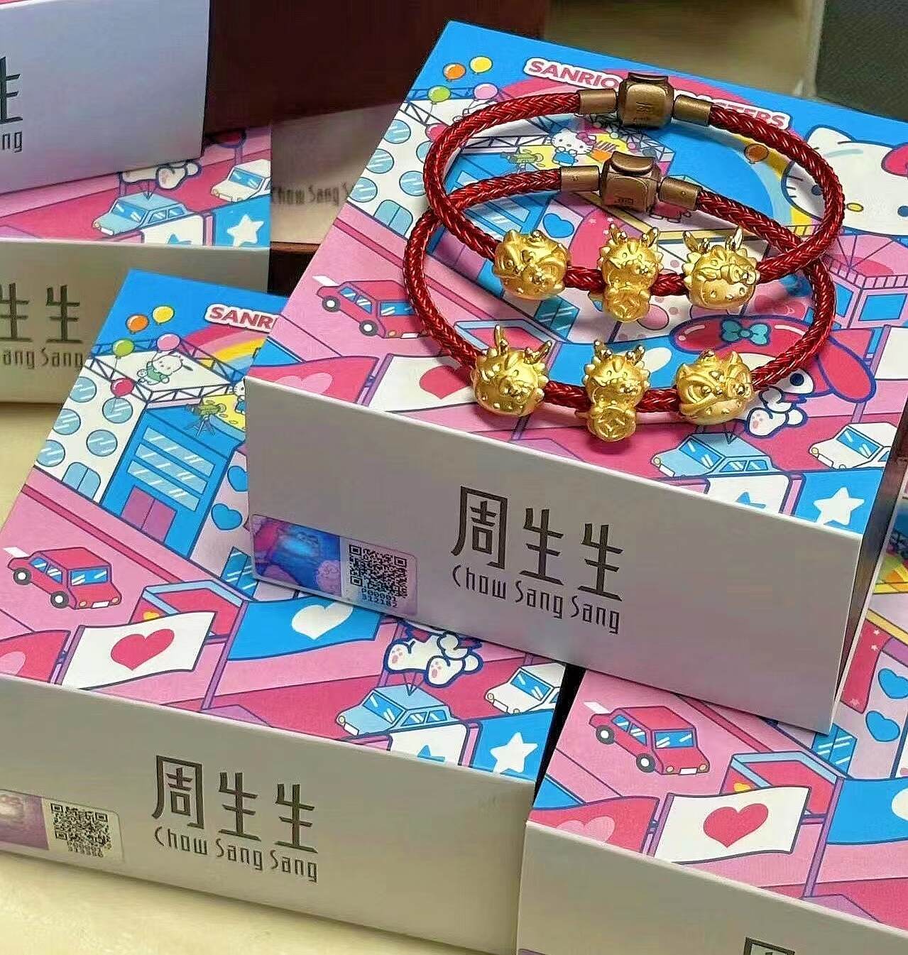 值得一提的是,IP合作、广式融合成为龙年黄金饰品市场的新趋势。比如,周生生与三丽鸥跨界联名推出了龙头Hello Kitty(凯蒂猫)足金串珠,一上市就备受年轻人追捧。广州某周生生门店销售顾问姚经理表示,“该热门款在广东各分店已售罄,工厂也断货了,还不确定什么时候有货。”