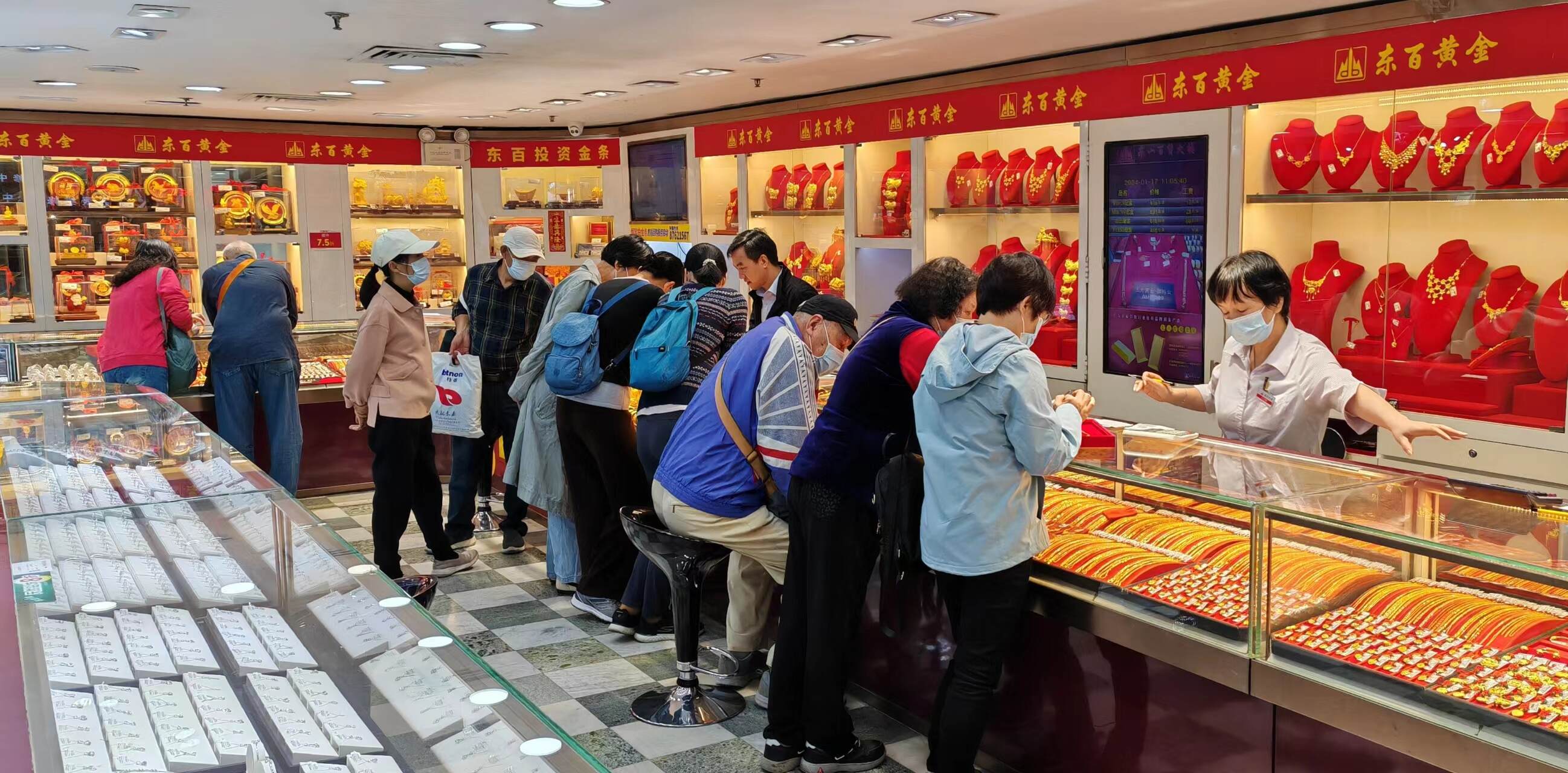 离农历新年还有大半个月,广州市内黄金消费已人气颇旺。1月17日上午11时,位于广州越秀的东百黄金柜台被顾客环绕,不少老广街坊正在询价和选购。广州东山百货业务部经理戴崇业告诉记者,“今年1月1日-1月15日,东百黄金销售额比去年同期增长了接近110%,其中首饰品类占比较大。”