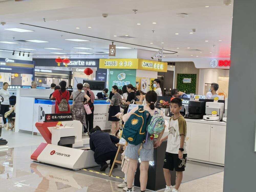 “空调、冰箱、洗衣机等家电大件依然是换新的主流选项,消费者‘追大逐新’消费趋势明显,低耗能高能效、高颜值质价比、智能新潮、嵌入式等新质家电热销。”苏宁易购广州地区总经理贺睿智透露,政府补贴活动以来,拉动苏宁易购广州门店客流整体上涨超100%,累计销售同比增长418%,其中空调、厨电、电视均同比增长超10倍。