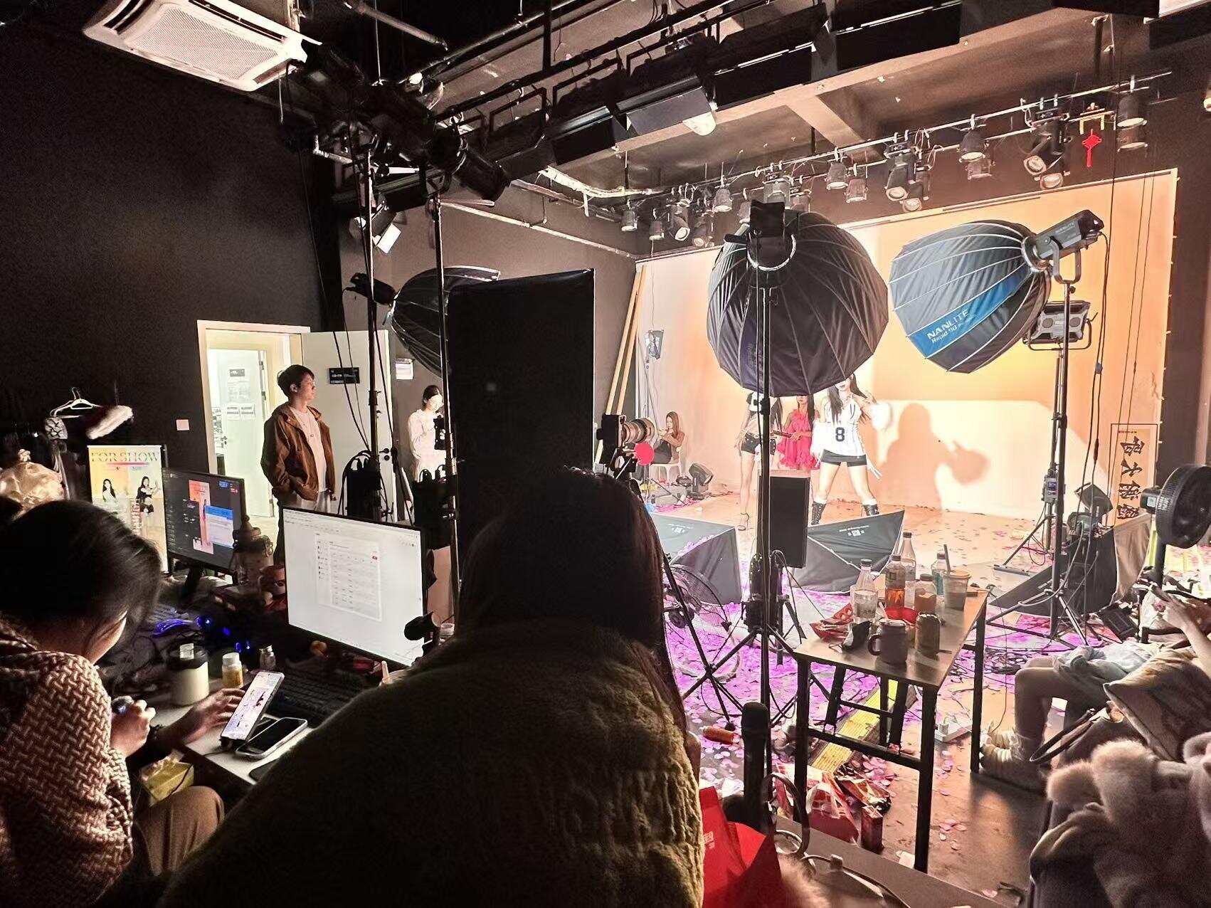 在广州番禺一处远离地铁的写字楼里,晚上7点整,五间直播间同时亮起。灯光师早已完成编程,VJ(视觉工程师)在后台调试着舞台背景动画,运镜师手持云台,紧盯镜头里8位女主播的一举一动——她们正以近乎军事化整齐的队形跳完一支韩团舞,汗水浸湿了打底衣,但笑容始终挂在脸上。