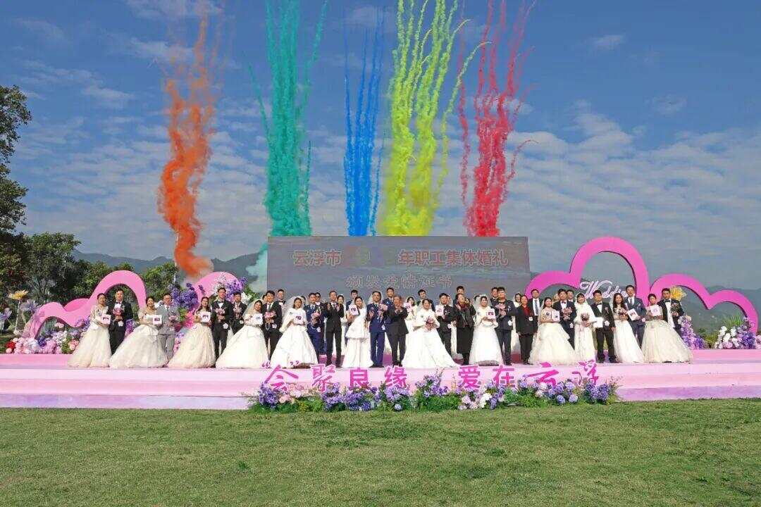 近日,由云浮市总工会、市文明办、市民政局、团市委、市妇联共同举办的“‘会’聚良缘·爱在云浮”职工集体婚礼在云浮市体育公园举行。云浮福彩积极参与本次活动,为22对来自各行各业的职工新人送上“喜相逢”刮刮乐即开票。云浮市人大常委会副主任、市总工会主席,以及主办方有关领导嘉宾、新人的亲朋好友齐聚现场,共同见证这一温馨浪漫时刻,并向新婚夫妇送上美好祝福。