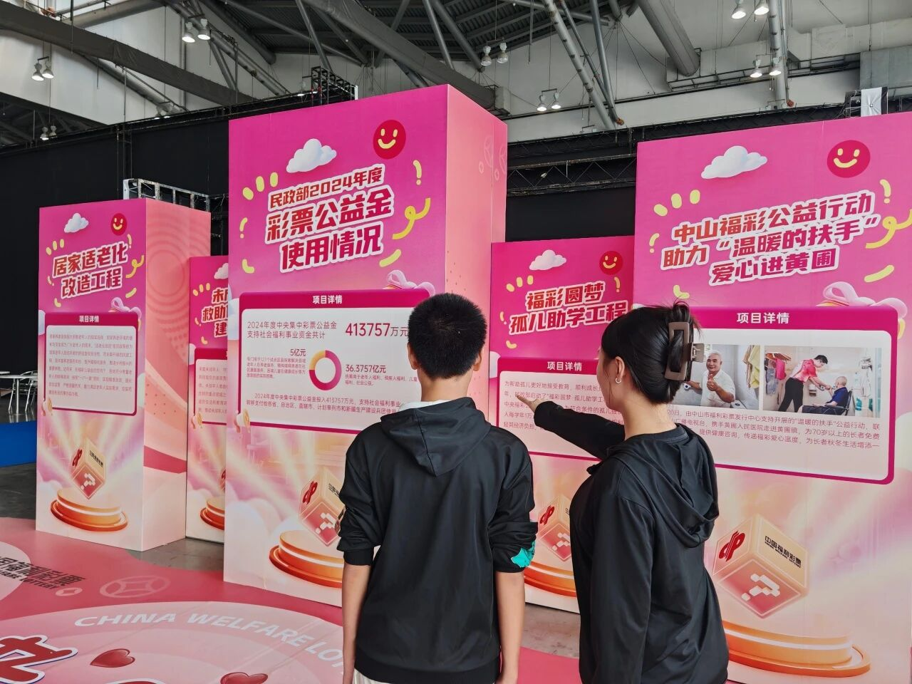 活动现场还设置了公益科普区,多块图文并茂的科普展板,向市民、游客清晰展示了福彩公益金助力社会福利和公益事业发展等方面的贡献与成效。从《民政部2024年度彩票公益金使用情况》的宏观数据,到“居家适老化改造”“未成年人救助保护中心建设”等具体项目,再到“福彩圆梦孤儿助学工程”、中山本地公益行动“温暖的扶手”等暖心案例,一张张图片、一段段文字,生动诠释了福彩公益金“取之于民、用之于民”的初心。市民纷纷驻足观看,进一步加深了对福彩公益事业的了解与认同。
