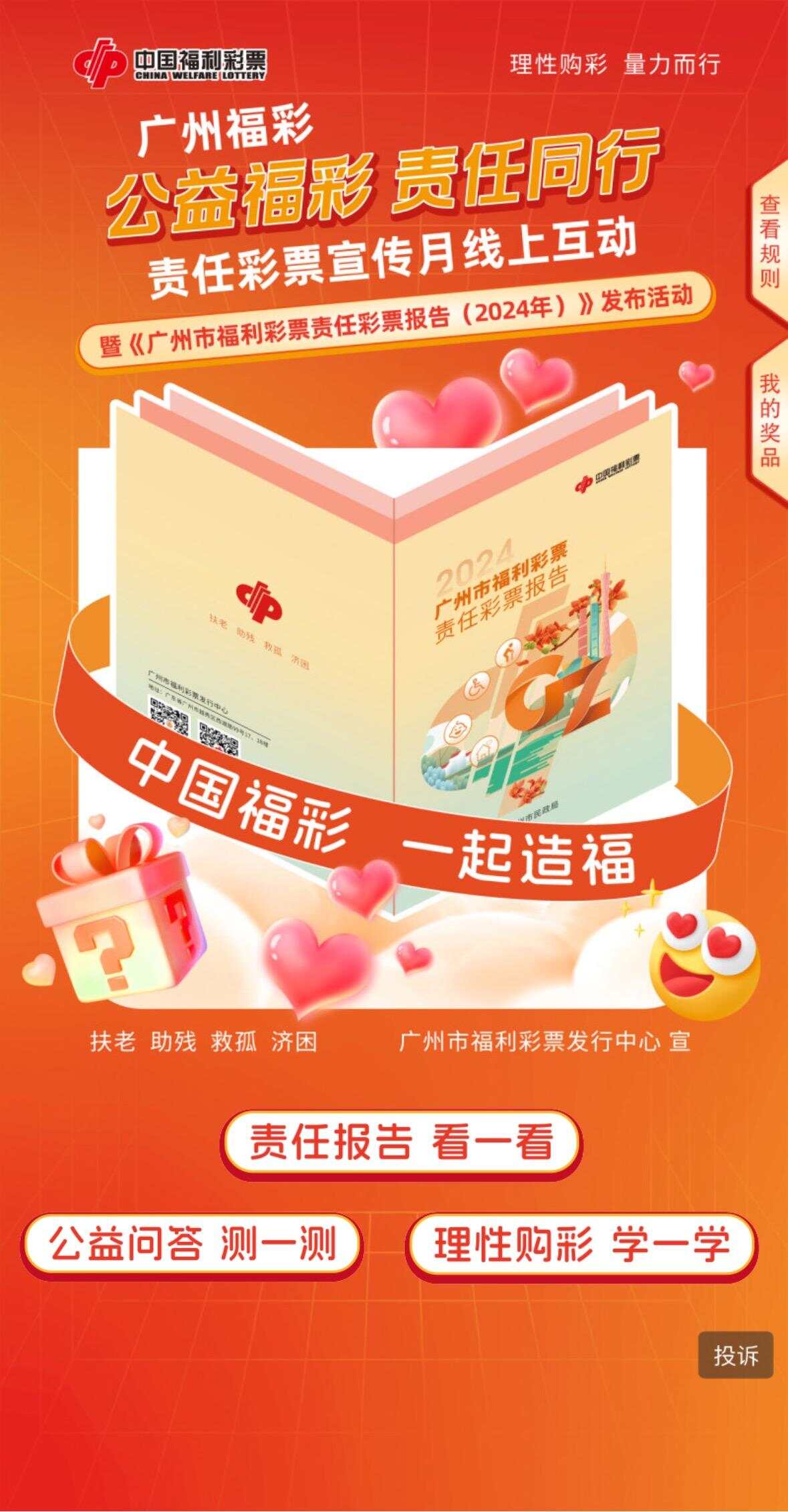 据悉,广州福彩积极践行责任彩票理念,用责任筑牢发展根基,自2018年起先后开展“公益宣传周”“公益宣传月”“责任彩票宣传月”等系列责任彩票宣传活动,向社会传递向上向善的福彩正能量。本次是广州福彩连续第三年开展责任彩票宣传月活动,活动形式与内容较去年更加丰富,并充分融入广州地方特色,为市民带来新鲜独特的责任彩票体验。未来,广州福彩将继续坚守公益初心,履责于行、尽责于民,积极做社会福利的忠实践行者、社会公益的重要推动者,在新时代责任彩票建设的征程上续写篇章。